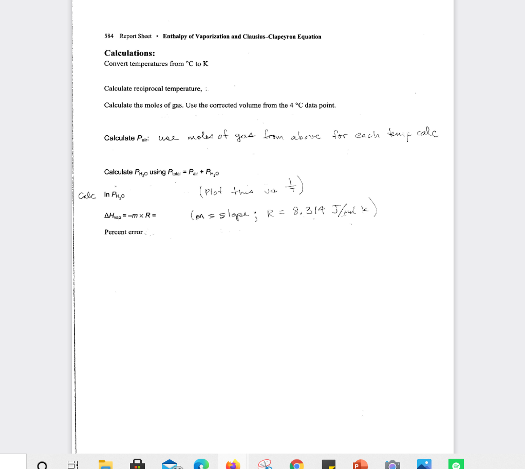 584 Report Sheet Enthalpy Of Vaporization And Chegg Com